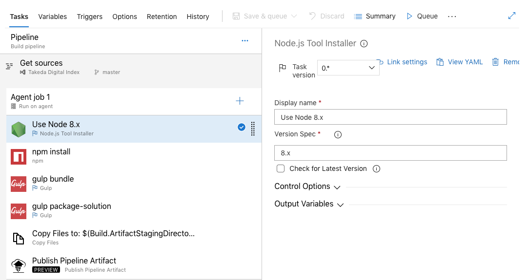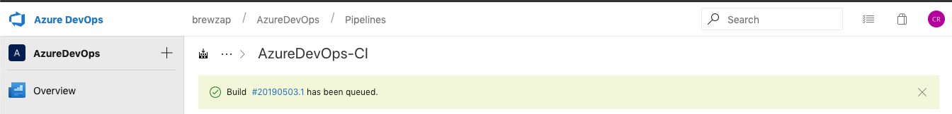 Once you select your YAML file path, we are done with the Pipeline. Click Save & queue to test it. On the dialog, just click Save & queue again to get your first build started. You’ll see a note that the build has started and you can click on the link to view the details.