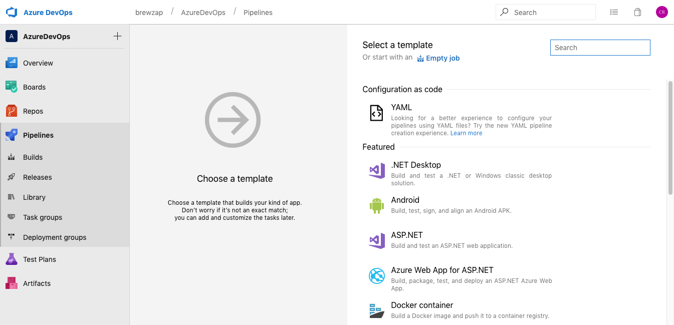 Now choose Empty job to start our new release pipeline.