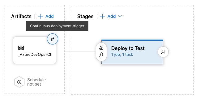 Now that you have a working release pipeline, the next step is to turn on Continuous Deployment. To do that, go to the Pipeline page. You may need to close the instance of your release you just ran. Click the lighting bolt icon wand it will highlight Continuous Deployment Trigger. Click on that.