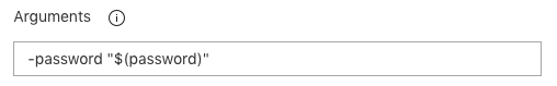Since we are using a secret variable for the password, we have to pass that as an argument to the script. That’s the only way to pass secret variables in. You do this by adding an argument specifying the name of the parameter and then the name of the variable be sure to include it in quotes like below.