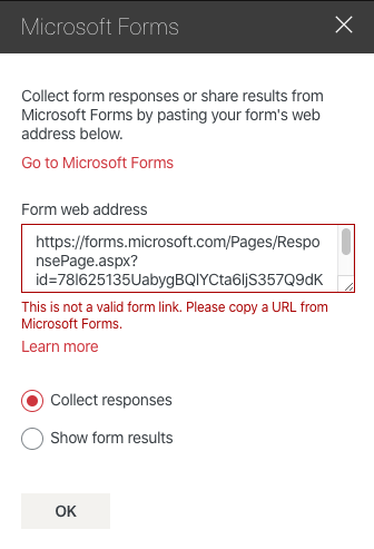 This is not a valid form link. Please copy a URL from Microsoft Forms.
